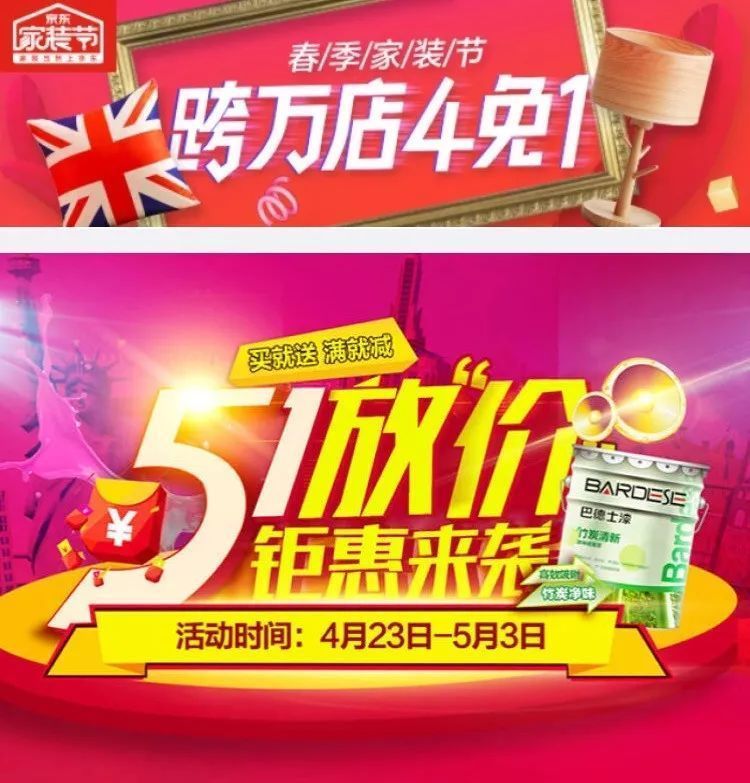 五一活動(dòng):天貓、京東巴德士漆官方旗艦店同步“51放價(jià),鉅惠來(lái)襲”活動(dòng),買(mǎi)就送,滿(mǎn)就減,活動(dòng)時(shí)間為4月23日—5月3日,真正的51放價(jià),回饋新老客戶(hù)了。此外還參加了京東家裝節(jié)活動(dòng),詳細(xì)可見(jiàn)其官網(wǎng)了解,優(yōu)惠是有的,就怕你不來(lái)。