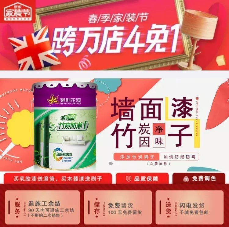 五一活動(dòng):老牌涂料品牌之一,其天貓、京東旗艦店均未見(jiàn)明確的五一促銷(xiāo)活動(dòng),但優(yōu)惠從未間斷。天貓紫荊花漆旗艦店,指定產(chǎn)品買(mǎi)一桶送一桶,還送BCG墻繪漆;京東紫荊花漆旗艦店參與春節(jié)家裝節(jié),跨萬(wàn)店4免1。至于其他門(mén)店五一促銷(xiāo)活動(dòng),有待咨詢(xún)和關(guān)注周邊門(mén)店動(dòng)態(tài)了。