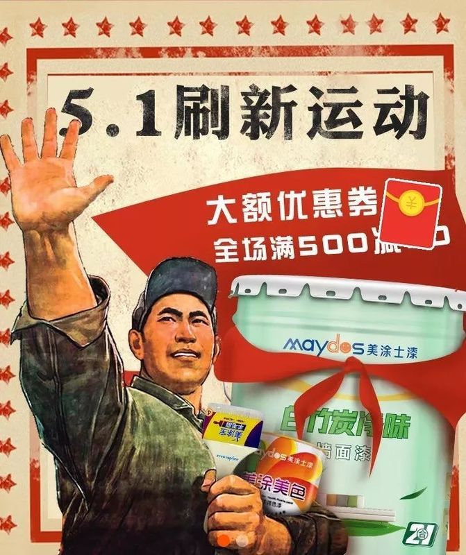 五一活動(dòng):4月17日,美涂士與酷家樂(lè)簽署戰(zhàn)略合作協(xié)議,為美涂士終端門(mén)店賦予革新力量,為經(jīng)銷(xiāo)商們帶來(lái)全新?tīng)I(yíng)銷(xiāo)模式。趁著五一期間,如果你有涂料消費(fèi)打算的話(huà),不妨到相關(guān)門(mén)店體驗(yàn)和購(gòu)買(mǎi)。而天貓美涂士官方旗艦店“5.1刷新運(yùn)動(dòng)”,全場(chǎng)滿(mǎn)500減50;京東“4月家裝節(jié)”,全場(chǎng)一件8折,兩件78折……