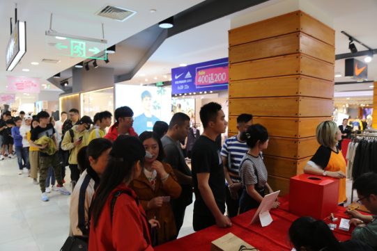眾多耐克的真愛粉絲從4月19日9點30分開始營業(yè)就抵達耐克專柜排隊領(lǐng)取號牌,4月20日早上準時守候在抽簽發(fā)售點等待發(fā)售。本次限量款發(fā)售28雙耐克限量球鞋,共發(fā)出100支號簽,中簽率在28%左右,依舊沒有抵擋粉絲們熱情的響應(yīng)。
