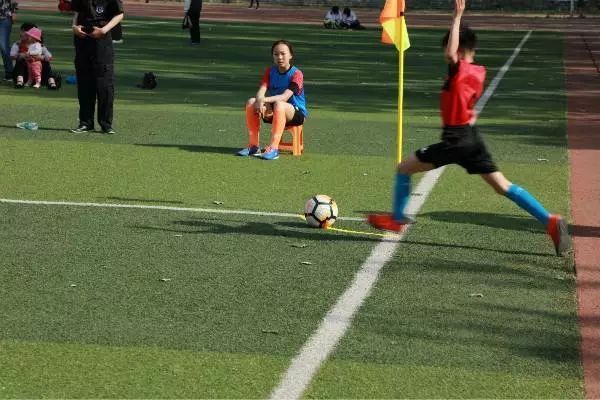 雙方小球員入場后,友好握手。扶輪小學(xué)陳民書記為本場青少年足球賽開球。裁判一聲哨響,足球小將們在綠茵場上馳騁,他們嫻熟的傳球,默契的配合,完成著每一次進攻,比賽高潮迭起。啦啦隊的隊員們?yōu)榍騿T們的表現(xiàn)吶喊助威。