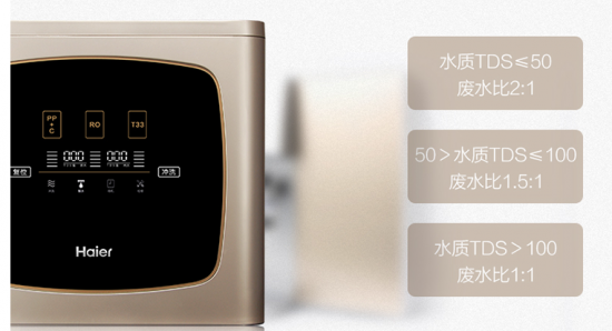 為此,海爾凈水流速王配備了智能化“基因”,打造全流程的健康飲水體系:通過可調(diào)節(jié)凈廢水比的反滲透凈水技術(shù)(實用新型專利號:201621410182-0),根據(jù)實際水質(zhì),凈廢比1:1至2:1智能可調(diào)節(jié);LED顯示屏直觀呈現(xiàn)進出水TDS的數(shù)值變化,凈化效果實時可見;水龍頭末端添加UVC抑菌模塊,即使長時間未使用也能保障最后一米(凈水機到水龍頭的管道距離)的用水安全,有效避免二次污染;水龍頭燈環(huán)與濾芯壽命相關(guān)聯(lián),無需打開櫥柜即可輕松查看濾芯狀態(tài),提醒用戶及時換芯......