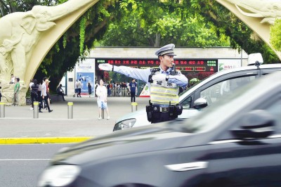 \u00A0\u00A0\u00A0\u00A0長(zhǎng)寧交警在上海動(dòng)物園門口指揮交通。趙立榮攝