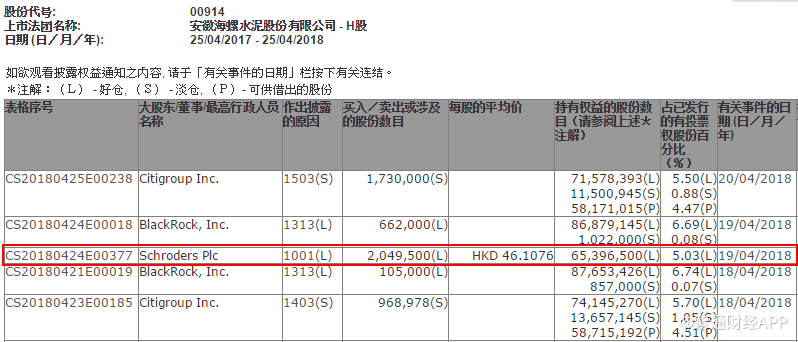 施羅德投資增持海螺水泥(00914)205萬(wàn)股,每股作價(jià)46.1076元