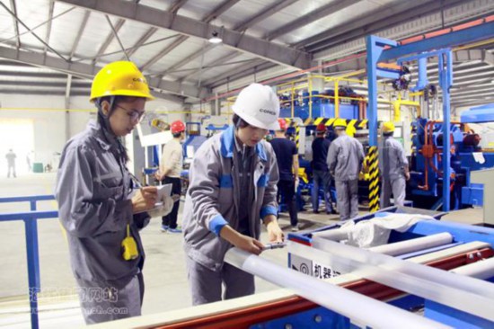 質(zhì)檢人員認真檢驗第一批鋁材