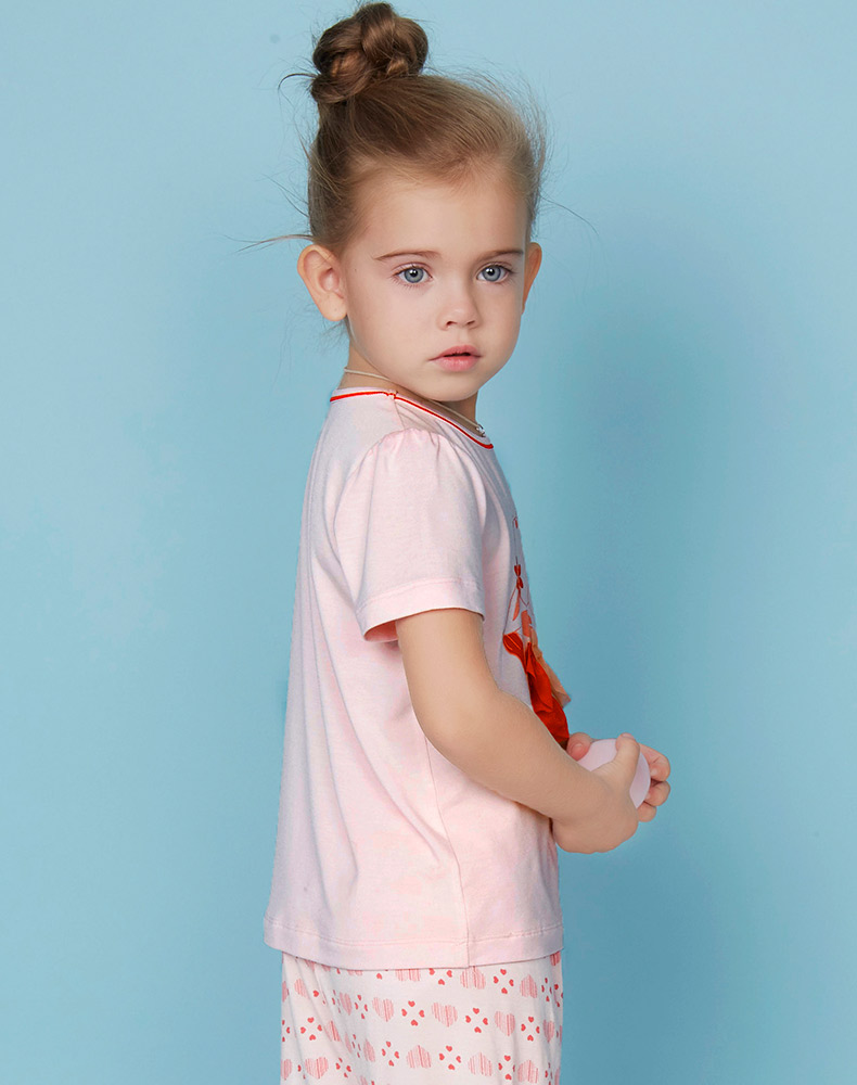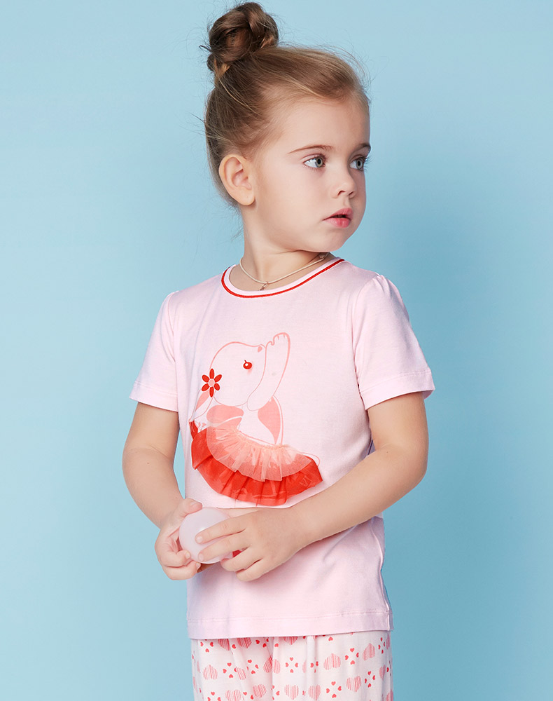 在愛慕兒童家居服飾的外觀設(shè)計(jì)中,總是能夠看到可愛的動(dòng)物圖案,其中憨萌的小熊、可愛的小兔子等孩子們最喜歡的動(dòng)物,都是愛慕兒童產(chǎn)品中最為常見的動(dòng)物形象。愛慕兒童3月新款芭蕾愛兔兒套頭短袖上衣,就是女孩子們非常喜歡的一款家居服飾產(chǎn)品。