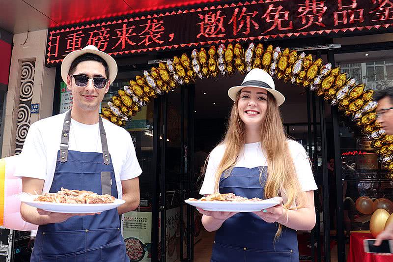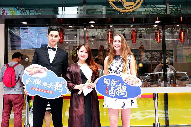 外國模特朋友們帶著金牌獅頭鵝的新品給今天來陶然風(fēng)味園的顧客們免費(fèi)品嘗