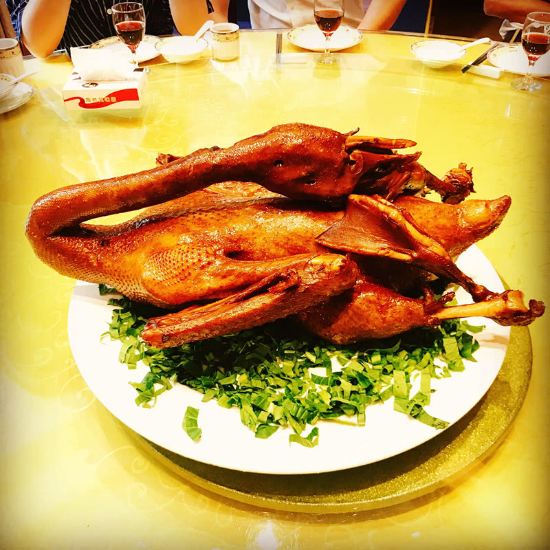 說起獅頭鵝這個名字,還得先解釋一下什么是獅頭鵝。獅頭鵝為目前我國農(nóng)間培育出的最大優(yōu)良品種鵝,也是世界上的大型鵝之一。原產(chǎn)廣東饒平縣浮濱鄉(xiāng),多分布于澄海、潮安、汕頭市郊。羽毛灰褐色或銀灰色,腹部羽毛白色。頭大而眼小,頭部頂端和兩側(cè)具有較大黑肉瘤,鵝的肉瘤可隨年齡而增大,形似獅頭,故稱獅頭鵝。其中又屬潮汕的獅頭鵝因其額頰肉瘤發(fā)達(dá)呈獅頭狀而得名,體型巨大,有“世界鵝王”的美譽(yù),記載最重公鵝達(dá)18公斤。而此次陶然風(fēng)味園引進(jìn)的就是聞名遐邇的潮汕獅頭鵝。