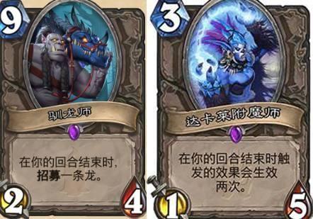冷門帶冷門,誰又能說設(shè)計(jì)師在設(shè)計(jì)馴龍師的時(shí)候就不是為大師而準(zhǔn)備的呢?設(shè)計(jì)師謀劃這套操作很久了,直到最近才被真正開發(fā)出來,再配上隱藏的神卡達(dá)卡萊附魔師,一回合就可以招募兩條龍。黑龍領(lǐng)主死亡之翼或許是個(gè)不錯(cuò)的選擇。3攻的選擇就比較多了,最近這套操作特別適合德魯伊的跳費(fèi)體系,大師一出,基本上大局已定!