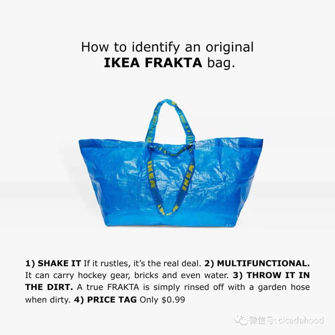 面對巴黎世家設計師 Demna Gvasalia 的“致敬”,宜家給出了非常機智的回應——“如何鑒別正品 FRAKTA”。