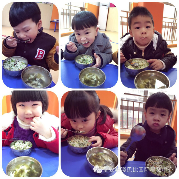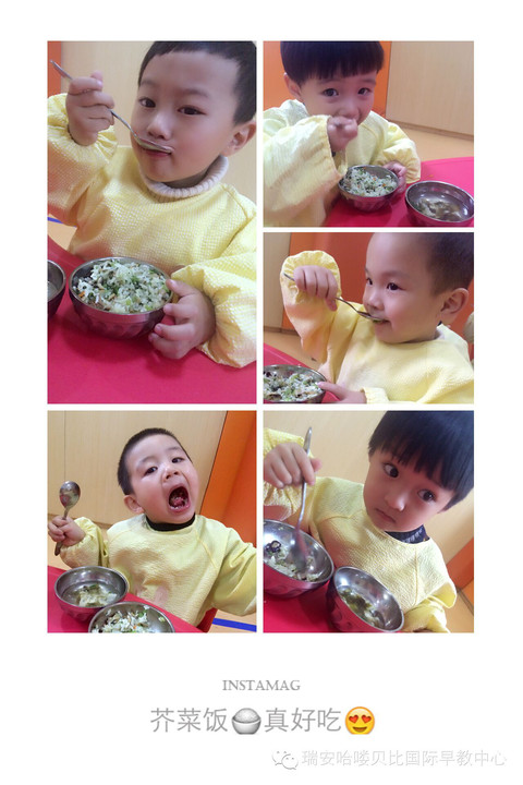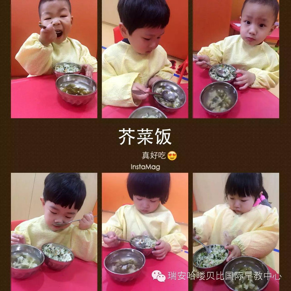 下面來看看小寶貝們吃芥菜飯的精彩畫面吧!