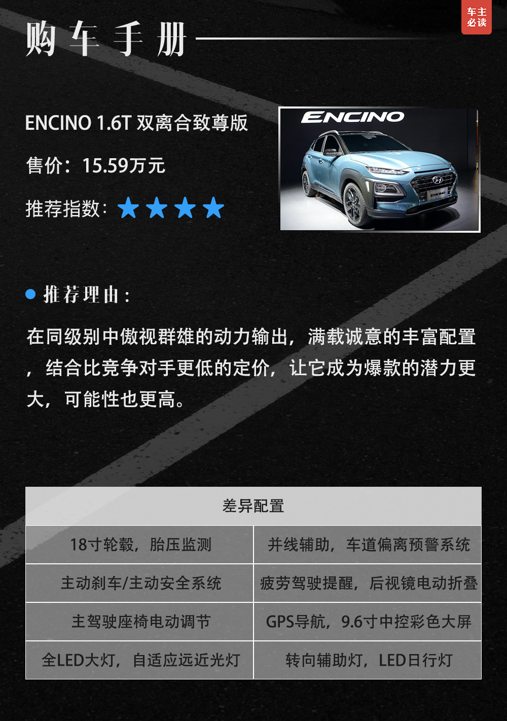 通過上述對比我們可以看出,由于XR-V上市多年,在面對新晉對手ENCINO時,審美的因素除外,在動力上和配置上明顯感覺實力不濟。ENCINO的目的非常明確,鮮明的定位無疑是想贏得年輕消費者的購買力。小編也相信ENCINO個性的設(shè)計,強大的動力,超高的性價定能俘獲年輕消費者的心。不過能否最終獲得成功,一舉將ENCINO推向該級別的銷售王座,還有待市場的檢驗,我們也將持續(xù)跟蹤觀察。