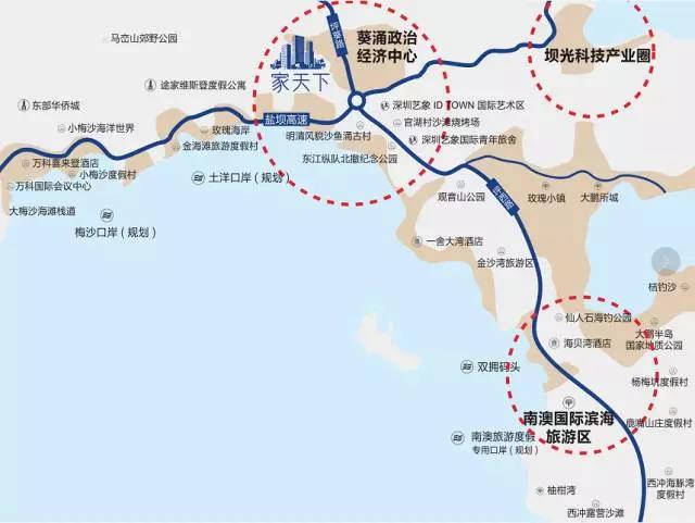 開車從南山過來,導(dǎo)航顯示五十分鐘,從福田四十分鐘,羅湖半個小時,下了高速就一個紅綠燈就到了,家天下這個位置是頭等艙,跟別的項(xiàng)目位置不一樣。