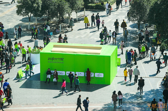 帶著孩子出來(lái)逛街的李女士告訴我們:“我一開(kāi)始看到這個(gè)地方出現(xiàn)這么大個(gè)綠盒子,很意外,但又覺(jué)得這個(gè)盒子挺眼熟,后來(lái)仔細(xì)看看,這不就是我們家里用的竹妃紙巾的盒子嗎!”