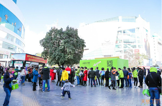 我們?cè)谀掀两诸^這個(gè)超大的“竹妃紙巾”盒旁邊采訪到了竹妃的工作人員,他們說(shuō):“竹妃紙巾是天然工坊公司的爆款產(chǎn)品,秉承著為大家提供健康、環(huán)保的好產(chǎn)品的理念,推出了不漂白的竹妃紙巾,這次在南屏街的這個(gè)品牌展示,是為竹妃紙巾在昆明的地推助力。”