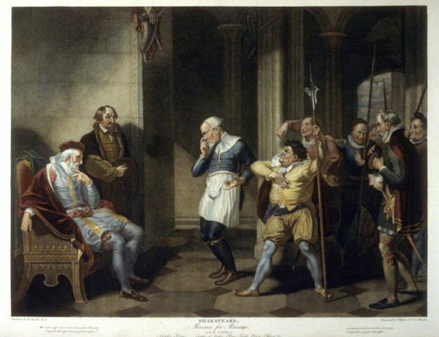 劇中代替公爵執(zhí)政的Angelo用古老的判罰判處那些犯了性不當(dāng)行為罪的公民死刑,見習(xí)修女Isabella懇求基于寬恕,他們之后的一些遭遇導(dǎo)致Angelo遭到法律譴責(zé)。