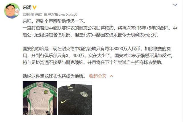 面對這樣的協(xié)議,難怪北京中赫國安就率先發(fā)聲怒懟,表達了不滿。中赫國安俱樂部方面表示,俱樂部會在今年下半年嘗試隊服贊助方面進行單獨招商,盡管這樣的挑戰(zhàn)未必會取得成功,但是卻做了敢為天下先的嘗試。作為組織者不能只維護自身利益而忽視俱樂部的利益。中超俱樂部是否應(yīng)該聯(lián)合起來,爭取合理的權(quán)益呢?相信球迷的眼睛是雪亮的,是嗎?