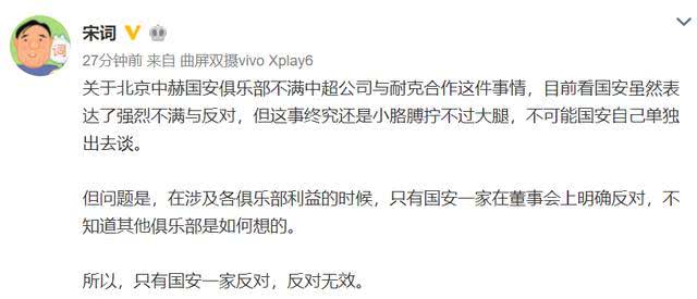 是夜,一石激起千層浪。各路足球媒體人紛紛發(fā)言,球迷們激昂憤慨,仿佛天下已“苦耐克久矣“。而我們也有理由相信,御林軍國安只是一個縮影,而其余的每一家中超球隊,鐵定都在打著自己的如意算盤……