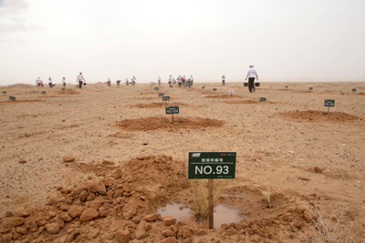 大自然家居市場營銷總部總經(jīng)理姚武鵬表示,大自然計(jì)劃在阿拉善公益植樹600畝,采用混交林模式種植梭梭、花棒共計(jì)54000株。據(jù)了解,在植樹3~5年后,將為沙漠增加綠地27萬平方米,可固定40.5平方米的流動(dòng)沙丘。
