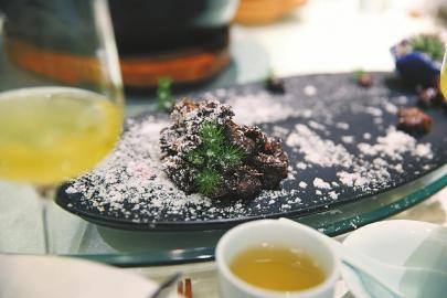 同時,王欽銳還將分子料理與川菜相結合。在他手里,白地瓜做成的四喜餃子里包裹的是口味正宗的冷吃豆瓣魚。“這道菜的樂趣就是,等到入口才發(fā)現(xiàn),眼見的和猜想的都不對,一入口才能吃得出反差的驚喜!