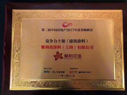 紫荊花涂料集團(tuán)榮獲《中國房地產(chǎn)2017年度采購峰會?建筑涂料?競爭力十強(qiáng)供應(yīng)商》稱號