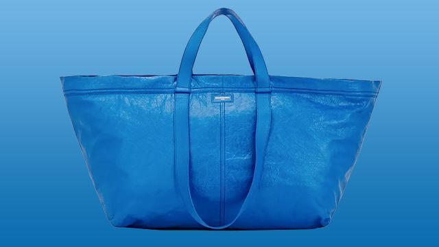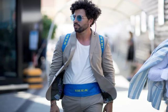 既然都提到PLEASURES了,我們還得好好說(shuō)說(shuō)IKEA是怎么成為潮流圈中的寵兒,家居圈中出的叛徒。2017年春天,Demna搞完了DHL,又看上了IKEA,活生生地將IKEA里賣(mài)4.5圓人民幣的購(gòu)物袋“改造”成了售價(jià)2145美金(當(dāng)時(shí)約合人民幣1.5萬(wàn)元)的BALENCIAGA Arena Extra Large Shopper Tote,不僅如此,他自己還在VETEMENTS的秀場(chǎng)上直接上身了一件IKEA的工服。