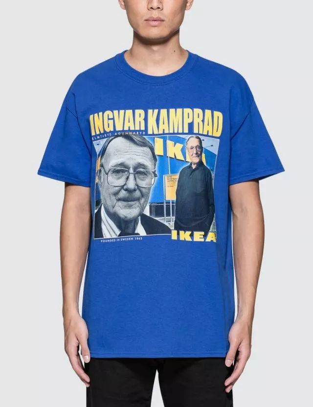 去年大火的倫敦服裝品牌Homage Tees也推出了IKEA創(chuàng)始人Ingvag Kamprad形象的Photo TEE,雖然才不到一年,Ingvag Kamprad他老人家就與世長(zhǎng)辭了,不知道你有沒(méi)有搶到一件來(lái)紀(jì)念這個(gè)偉大的老人。