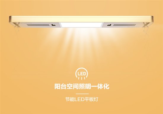 心悅系列智能晾衣機(jī)中間內(nèi)嵌大面積LED燈,不僅能照亮整個陽臺,而且功率低,光效柔和,燈光均勻無閃爍,營造舒適晾衣環(huán)境。