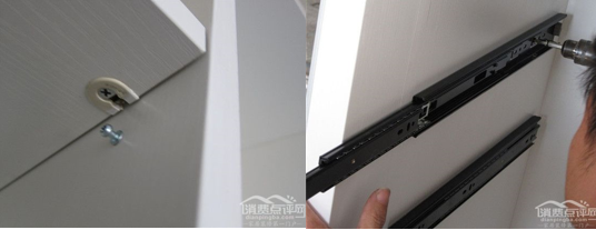 安裝底板前,師傅先將放置衣柜的地面打掃干凈,再按照設(shè)計(jì)圖紙開始組裝衣柜底座。裝好側(cè)板和背板,又加上拉固條固定,衣柜框架就成形了。后背板是采用后背拉柱、入槽式的方法,當(dāng)初選擇頂固,很大一部分原因是頂固衣柜采用的是后背板“離墻干燥法”。裝好層板,衣柜人性化的結(jié)構(gòu)設(shè)計(jì)就展現(xiàn)眼前了。抽屜是衣柜重要的組成部分,而抽屜最重要的配件是滑軌。安裝滑軌,師傅花了不少時(shí)間一一調(diào)試裝好,確保推拉順暢。師傅還說(shuō)活動(dòng)層板設(shè)計(jì)的螺釘也是頂固的專利,如此專業(yè)也讓我們放心!