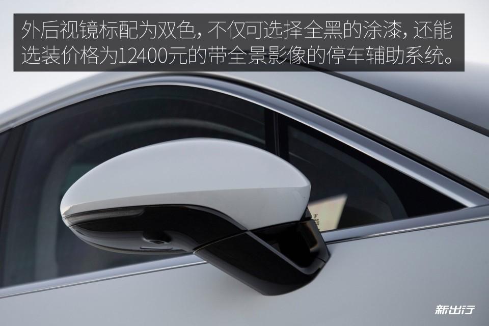 而外后視鏡標(biāo)配的為雙色,除了可選擇全黑的涂漆配色外(價(jià)格 7500 元),還能選裝帶 360° 全景影像的停車輔助系統(tǒng),選裝價(jià)格為 12400 元。