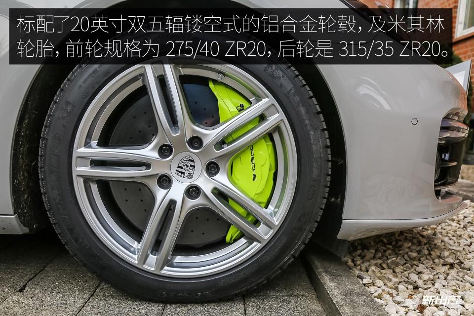 此次試駕的這款車標(biāo)配的輪胎與燃油版也一致,標(biāo)配的是 20 英寸雙五輻鏤空式的鋁合金輪轂,輪胎品牌都來自米其林,前輪的規(guī)格為 275/40 ZR20,后輪的規(guī)格則是 315/35 ZR20。