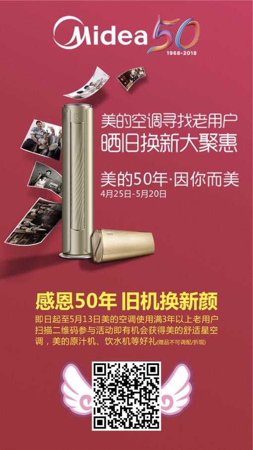 曬舊換新大聚惠,美的空調(diào)尋找老用戶,購(gòu)買(mǎi)年限超過(guò)3年的美的空調(diào)老用戶即日起至5月13日掃描下方二維碼,按要求填寫(xiě)相關(guān)信息,就有機(jī)會(huì)獲贈(zèng)換新機(jī)特權(quán)。