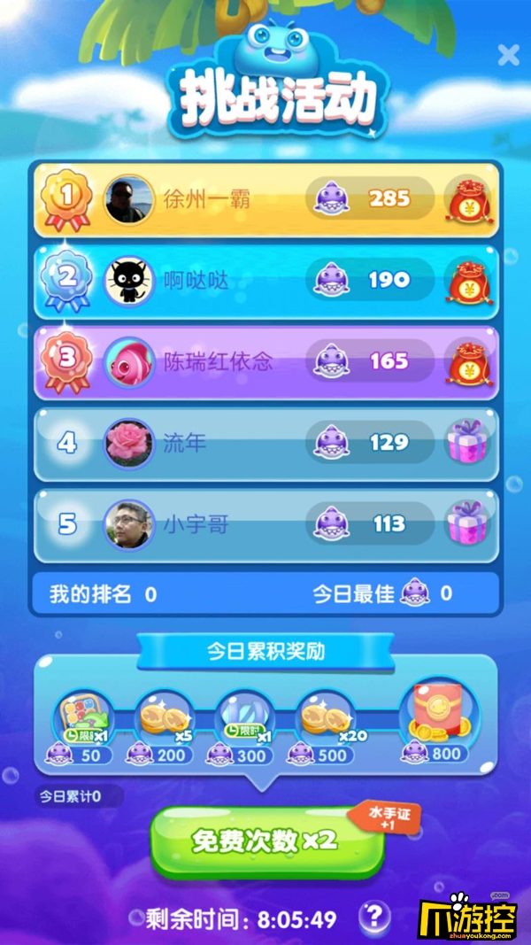 《點點消寶藏》挑戰(zhàn)活動春日全新開啟,累計擊敗鯊魚數(shù)量可以獲得豐厚獎勵,更有單次挑戰(zhàn)擊敗鯊魚數(shù)量大比拼,每天單次參加挑戰(zhàn)活動擊敗的鯊魚數(shù)量越多,得到的獎勵也會更加豐厚。第1名更有千元紅包大獎。第2名500元,第3名200元。獎勵每天發(fā)放,今天沒搶到不要緊,每一天都是一個新的挑戰(zhàn),盡情擊敗鯊魚搶占榜首吧!