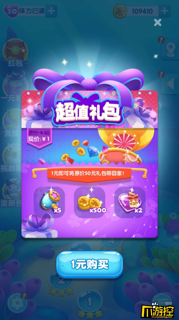 超值特惠禮包全新登場,1元即可將原價50元組合特惠大禮包帶回家。助你在通關道路上如虎添翼。針對體力不足的問題,新版本也推出了1元購買2小時無限體力,再也不用擔心體力不夠用了。但是小伙伴們要注意了,無限體力可是有購買時限的,限時優(yōu)惠兩小時,錯過兩小時就要等待下一次優(yōu)惠的時間了。無限體力特惠購買不是每次都有的優(yōu)惠哦!