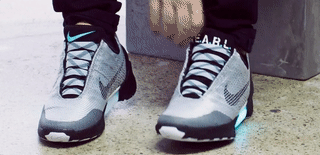 將前腳掌伸到鞋里,傳送帶讓腳帶到正確位置,固定好,HyperAdapt 自動(dòng)調(diào)節(jié)鞋面松緊,兩個(gè)維度都到達(dá)最合適的狀態(tài)。