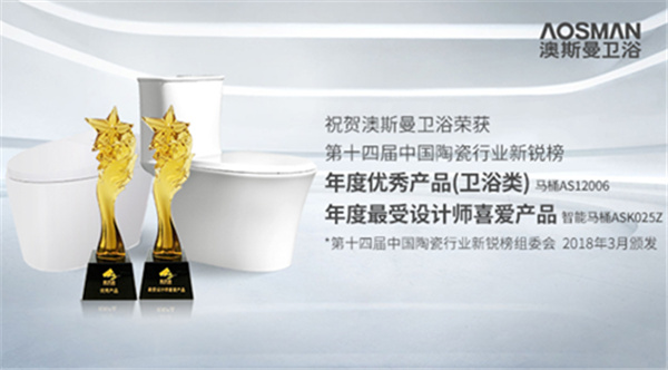 \u00A0\u00A0\u00A0 接連攬獲多項大獎 澳斯曼衛(wèi)浴獲行業(yè)權(quán)威認(rèn)可
