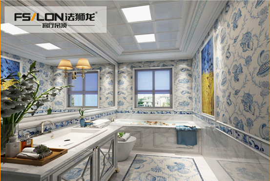 3、歐式風(fēng)格浴室法獅龍吊頂————特點:由于城市的住房普遍較低,法獅龍吊頂后,感到壓抑和沉悶。所以頂面不加修飾的裝修,開始流行起來。而歐式法獅龍吊頂裝修往往復(fù)雜精致,不只是頂面做簡單的平面造型處理,采用現(xiàn)代的燈飾燈具,配以精致的角線就能完工事的工作,因此歐式法獅龍吊頂一般都出現(xiàn)在大型別墅等建筑中,很少在普通人家見到有這么裝修的。吊什么樣的頂都需要我們根據(jù)房間的實際情況和個人愛好進(jìn)行取舍。而一個構(gòu)思巧妙,適合房子特點的法獅龍吊頂不但可以彌補(bǔ)房間的缺點,還可以給居室增加個性色彩,所以說選擇法獅龍吊頂就等于選擇自己的居室表情。而歐式法獅龍吊頂也并不流行與普通 家居 裝修,因此選擇這樣的法獅龍吊頂需要慎重,雖然夠氣派,但不能強(qiáng)行安裝,不然會不倫不類,影響整個 家居 裝修效果。淡藍(lán)色的燈光,透明的質(zhì)感,營造出一種非常浪漫的氛圍,這樣的廚房裝修樣式,這種比較現(xiàn)代化的歐式裝修風(fēng)格,讓這廚房法獅龍吊頂也顯得非常不同,雖然整個廚房法獅龍吊頂比較簡單,沒有過多的裝飾盒設(shè)計,但是在燈光的打造下,還是襯托出一種非常美幻的感覺。