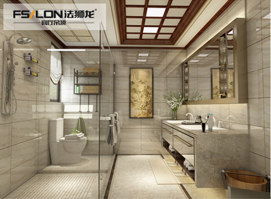 2、東南亞式風(fēng)格浴室法獅龍吊頂——獨特品質(zhì):在飾品搭配上,經(jīng)常可以看到的是最醒目的大紅色的東南亞經(jīng)典漆器,金色、紅色的臉譜,金屬材質(zhì)的燈飾,如銅制的蓮蓬燈,手工敲制出具有粗糙肌理的銅片吊燈,這些都是最具民族特色的點綴,能讓空間散發(fā)出濃濃的異域氣息,同時也可以讓空間禪味十足,靜謐而投射哲理。