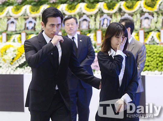 新浪娛樂(lè)訊 今日(4月23日)上午,韓國(guó)演員車仁表與辛愛(ài)羅夫婦前往京畿道安山市檀園區(qū)古棧洞,拜訪設(shè)置于安山奧林匹克室內(nèi)體育館內(nèi)的“Sewol號(hào)”沉船事故遇難者臨時(shí)共同焚香所,進(jìn)行吊唁,表情沉重。