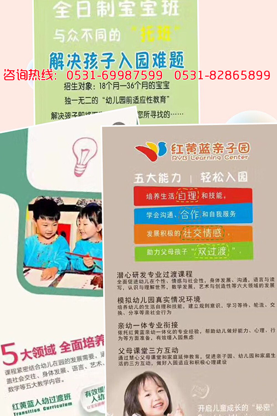 紅黃藍(lán)入園過(guò)渡班,濟(jì)南槐蔭區(qū)少兒早教課程,新式教育 市場(chǎng)大無(wú)限。愛(ài)上紅黃藍(lán)親子園.全國(guó)300多家高品質(zhì)雙語(yǔ)親子園,家長(zhǎng)信賴(lài)的親子園品牌.紅黃藍(lán)親子園,培養(yǎng)健康,快樂(lè),有競(jìng)爭(zhēng)力的兒童!