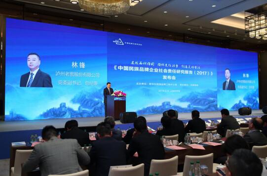 會(huì)上,新華社中國(guó)經(jīng)濟(jì)信息社聯(lián)合中國(guó)社會(huì)科學(xué)院發(fā)布了《中國(guó)民族品牌企業(yè)社會(huì)責(zé)任研究報(bào)告(2017)》,分析民族品牌社會(huì)責(zé)任發(fā)展指數(shù),評(píng)價(jià)民族品牌年度社會(huì)責(zé)任管理狀況和社會(huì)、環(huán)境信息披露水平,旨在推動(dòng)中國(guó)民族品牌企業(yè)社會(huì)責(zé)任發(fā)展,助力提升品牌影響力和美譽(yù)度。報(bào)告指出,2017年,瀘州老窖股份有限公司秉承“天地同釀,人間共生”的企業(yè)哲學(xué),堅(jiān)持“與社會(huì)同行、與環(huán)境相依、與人類共存”的社會(huì)責(zé)任理念,高度重視黨的建設(shè)、產(chǎn)品質(zhì)量、安全生產(chǎn)與環(huán)境保護(hù),充分保障股東、債權(quán)人、消費(fèi)者和員工合法權(quán)益,積極開展精準(zhǔn)扶貧、捐資助學(xué)工作,較好地實(shí)現(xiàn)了瀘州老窖與利益相關(guān)方在經(jīng)濟(jì)、社會(huì)與環(huán)境方面的共同發(fā)展。