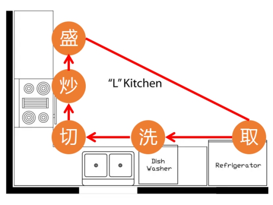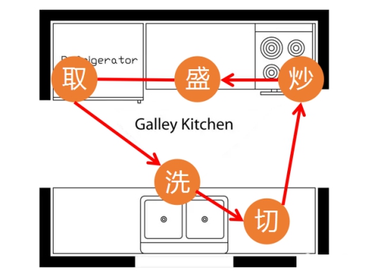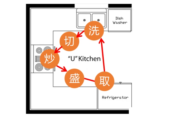 廚房動(dòng)線就是把廚房布置得符合整個(gè)流程,讓做飯變得行云流水般順暢。