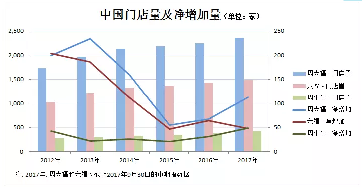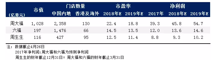 對于估值最低的周生生,雖然三者之中并門店增速是最高,不過基于風口主要在三四線城市,再考慮到性價比因素,周生生較高級的零售價未必能完全受青睞。