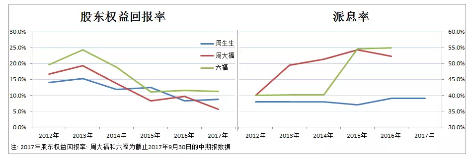 不論從估值來看、門店布局或是產品路線,六福的性價比是三者中最高,而且公司的股東權益回報率及派息率亦較佳。