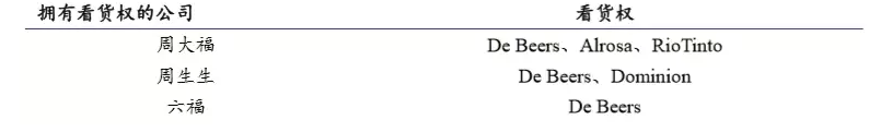 從看貨權來看,國內鉆石看貨權資源稀缺,三家企業(yè)均擁有部分原鉆開采商看貨權,這也是港資品牌領先于國內品牌的優(yōu)勢。