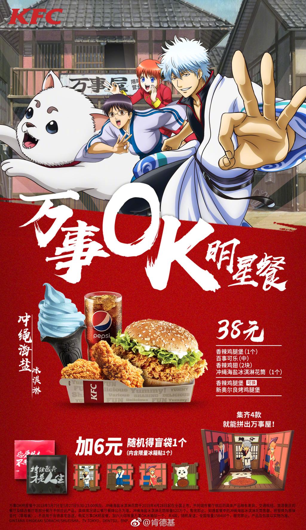 此外,肯德基與銀魂聯(lián)動(dòng)的“萬(wàn)事OK明星餐”定價(jià)38元,于5月7日至5月27日9:30-23:00供應(yīng)。套餐內(nèi)的“沖繩海鹽冰淇淋花筒”限量620萬(wàn)個(gè),以及限量周邊可以換購(gòu),售完即止。