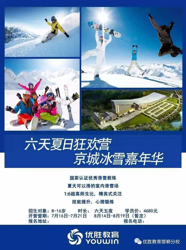 夏日的悶熱煩躁,在這里都不是問題,敞開心扉,在冰爽的滑雪場飛馳而下; 豐富多彩的主題活動,采用積極心理學的理念,讓你在活動中得到學習,收獲成長,最終實現(xiàn)技能的學習和心理的鍛煉雙豐收。