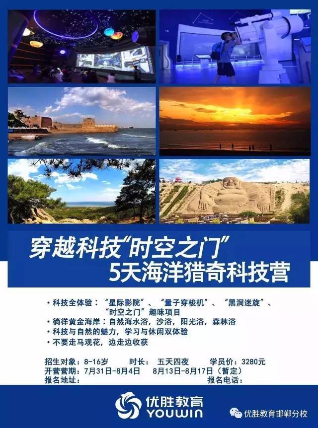 背上行囊,撲向大海,觸摸科技的魅力,感受大海的胸懷,了解歷史變遷,乘風破浪、聽濤聲、聞鷗鳴、大海之浩瀚盡收眼底,讓你的心和你的思緒跟著成 長的旋律—舞動起來,讓快樂與成長同行,讓足跡成為你永恒的記憶。