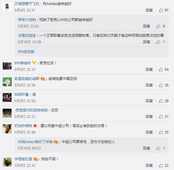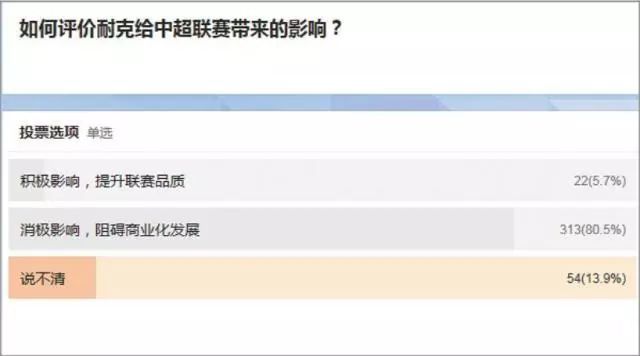 《足球周刊》關(guān)于耐克與中超相關(guān)調(diào)查顯示,大多是人并不支持耐克與中超續(xù)約。