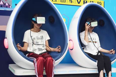圖片說(shuō)明:消費(fèi)者進(jìn)行vr體驗(yàn)